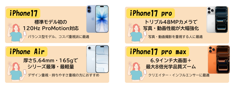 iPhone 17シリーズは、「4モデル展開」でユーザーの多様なニーズに応えるラインナップです。